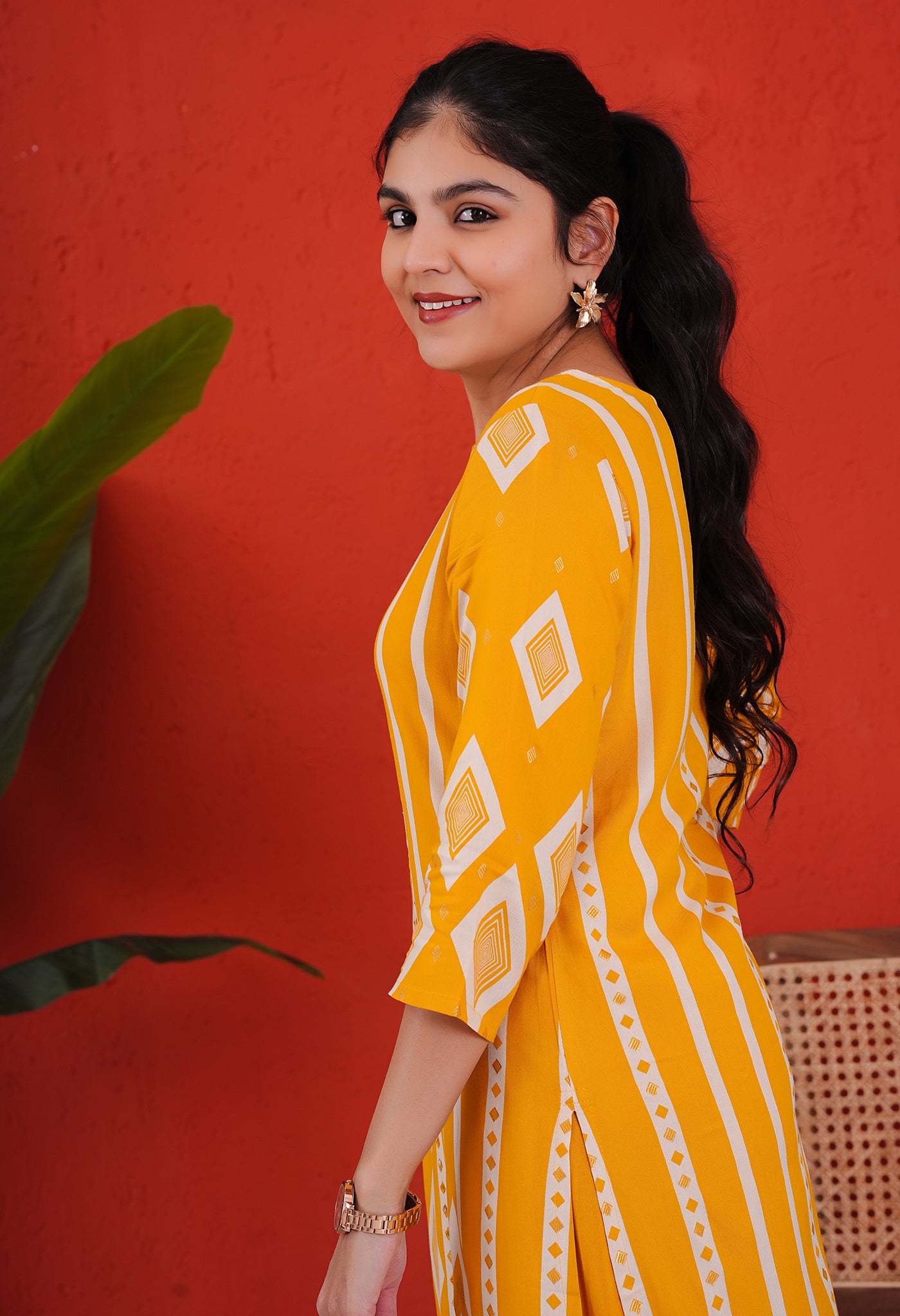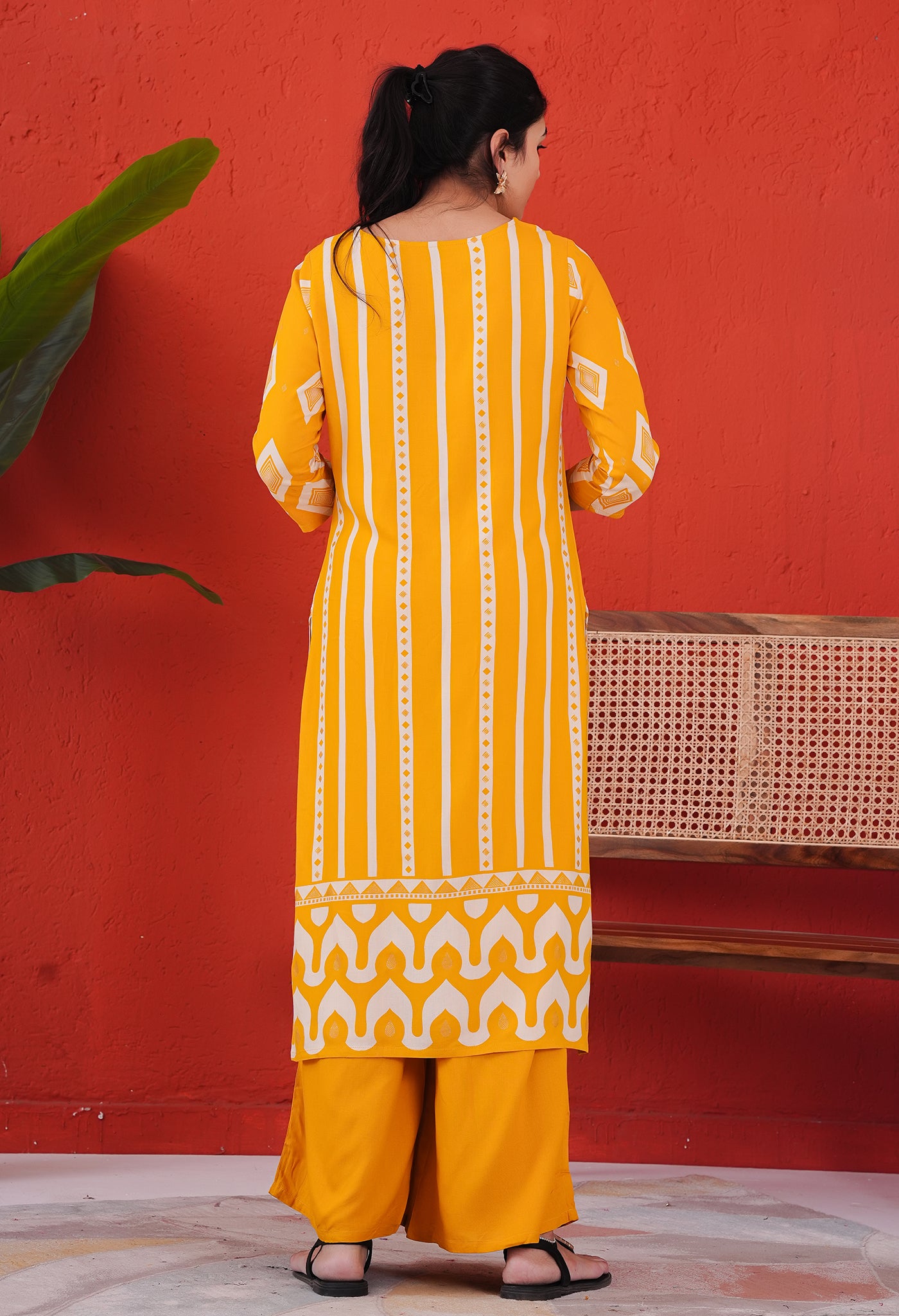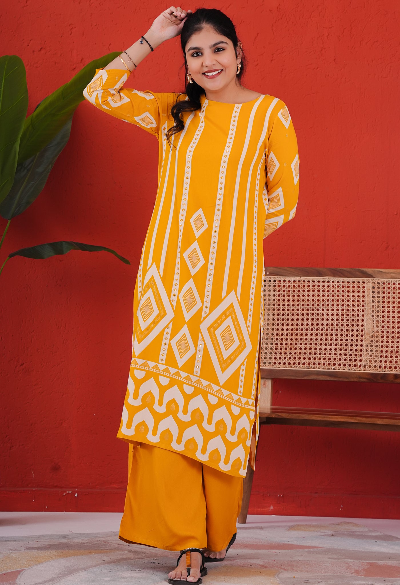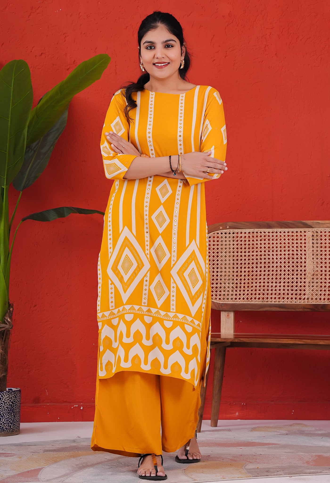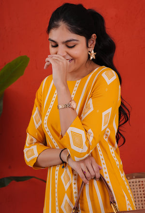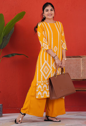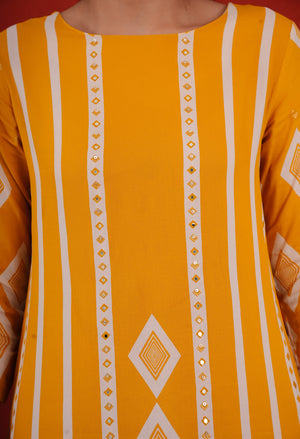 Dark Yellow Rayon Kurta Pant Set